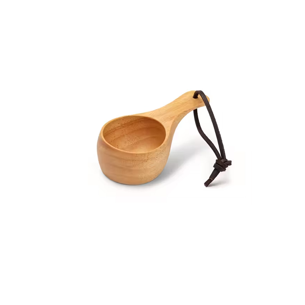 Träkåsa av mellanstorlek (15 cl) med lädersnodd. Praktiskt och stilsäkert tillbehör på varje friluftsutflykt som kommer att skänka glädje till sin ägare under många år.